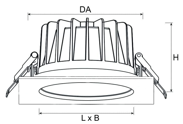 LED Einbauleuchte quadratisch, Lichtverteilung symmetrisch, Einbauring aus Aluminium-Druckguss pulverbeschichtet, Reflektor 36° tief-/breitstrahlend aus 99,9% Reinstaluminium hochglänzend facettiert (UGR<19 bis 20W/2700lm) mit Linsenoptik für eine bessere Lichtverteilung, Passive Kühlung aus Aluminium, Multi-Treiber nicht dimmbar mit DIP-Schalter (5 Leistungsstufen) separat mit Verbindungsleitung, Werkzeugloser Einbau durch Klappfeder, Farbe weiß RAL 9016