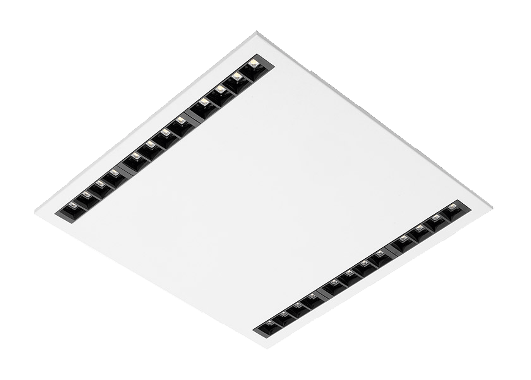 LED Einlegeleuchte, Modul 625, Lichtverteilung symmetrisch, Rahmen aus Aluminium pulverbeschichtet, mit Dark Light Optik schwarz UGR<16, Passive Kühlung aus Aluminium, Treiber nicht dimmbar separat mit Verbindungsleitung, Farbe weiß RAL 9003