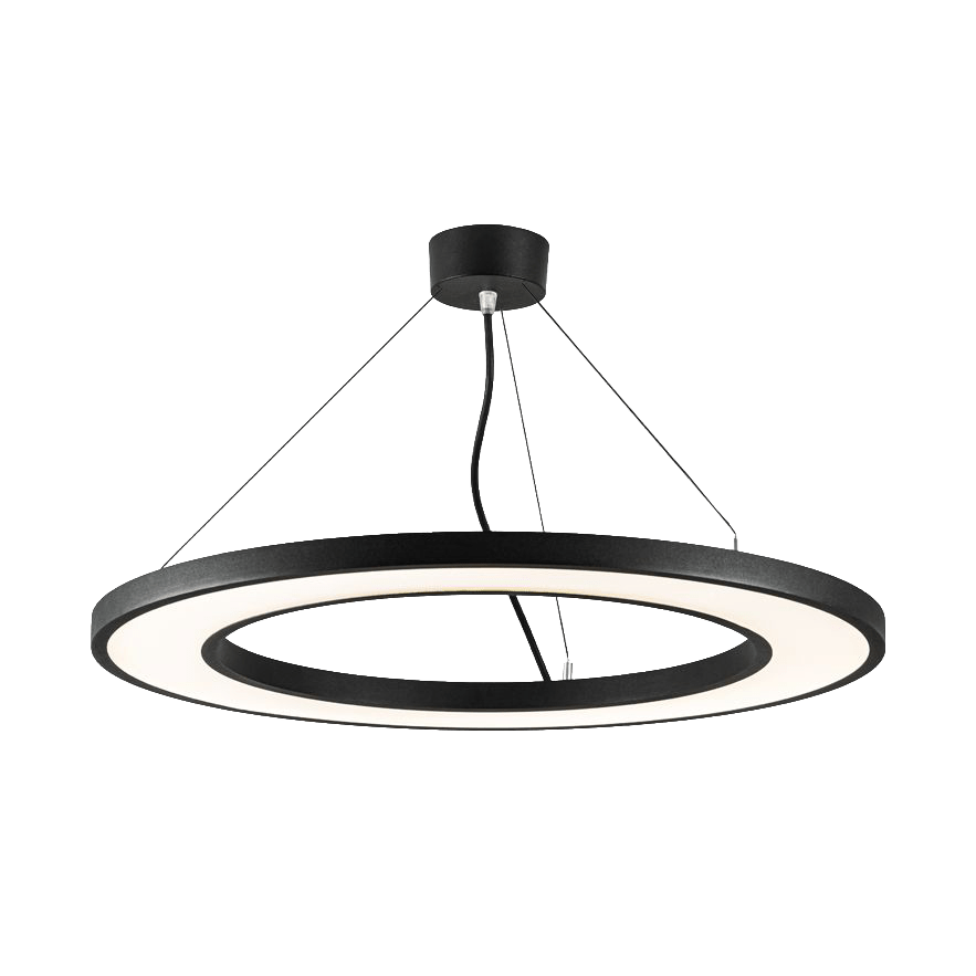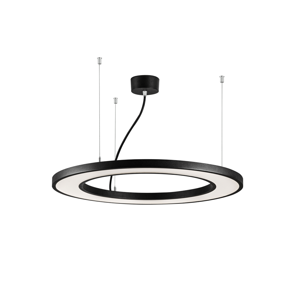 LED Ring-Pendelleuchte, Lichtverteilung symmetrisch, direkt/indirekt, Gehäuse aus stranggepresstem Aluminium pulverbeschichtet, Passive Kühlung aus Aluminium, mit opaler Abdeckung, Treiber nicht dimmbar, 3-fach Stahlseilaufhängung 2000mm, Baldachin und Zuleitung, Farbe weiß RAL 9016