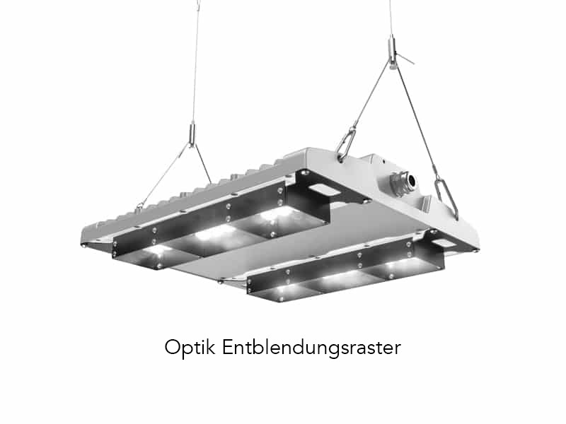 Treiber Dali dimmbar, Linsenoptik symmetrisch 55/85°, Linsenoptik asymmetrisch 25x85/50x105/80x100/30x105°, Anbaubügel für Deckenanbau verstellbar bis 60°, Entblendungsraster 28/38mm