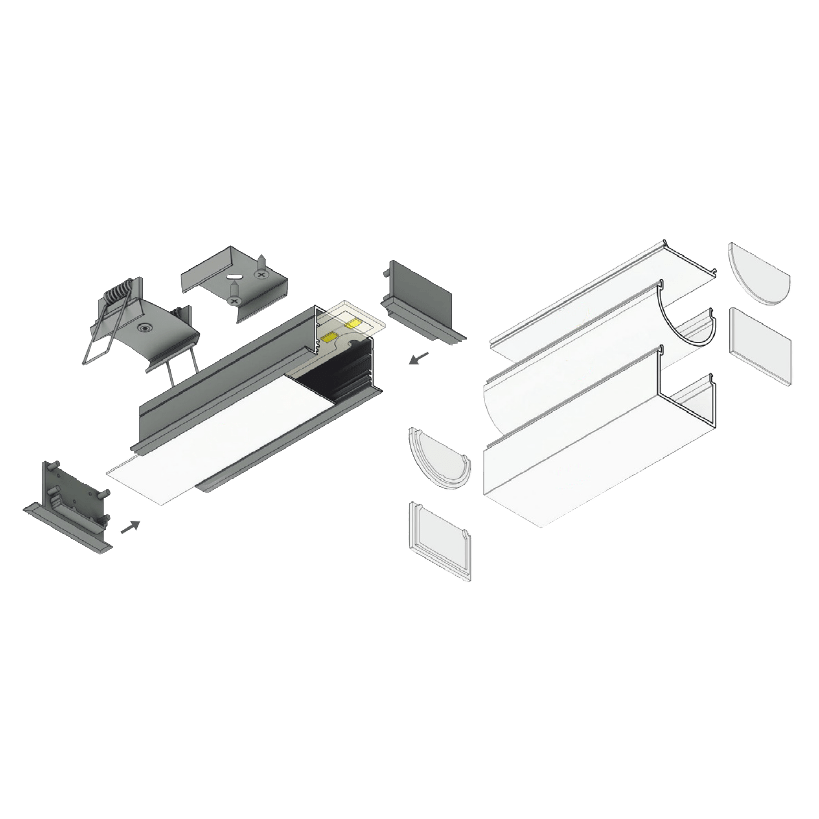 Profillänge nach Kundenwunsch mit Flexband und Treiber konfektionierbar, Farbe weiß lackiert oder schwarz eloxiert