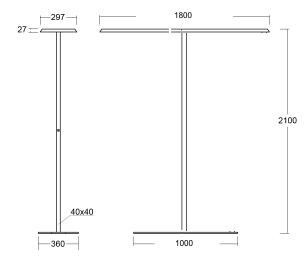 LED Stehleuchte für Doppelarbeitsplätze, Lichtverteilung direkt 50%/indirekt 50%, Leuchtengehäuse/Standrohr aus stranggepresstem Aluminium pulverbeschichtet, Leuchtenfuß aus Stahl pulverbeschichtet, Microprismatischer Abdeckung UGR<17,2, Treiber nicht dimmbar, 2-fach Schalter im Standrohr integriert, getrennt schaltbar, Zuleitung 2000mm mit Schukostecker, Farbe weiß RAL 9016 Feinstruktur